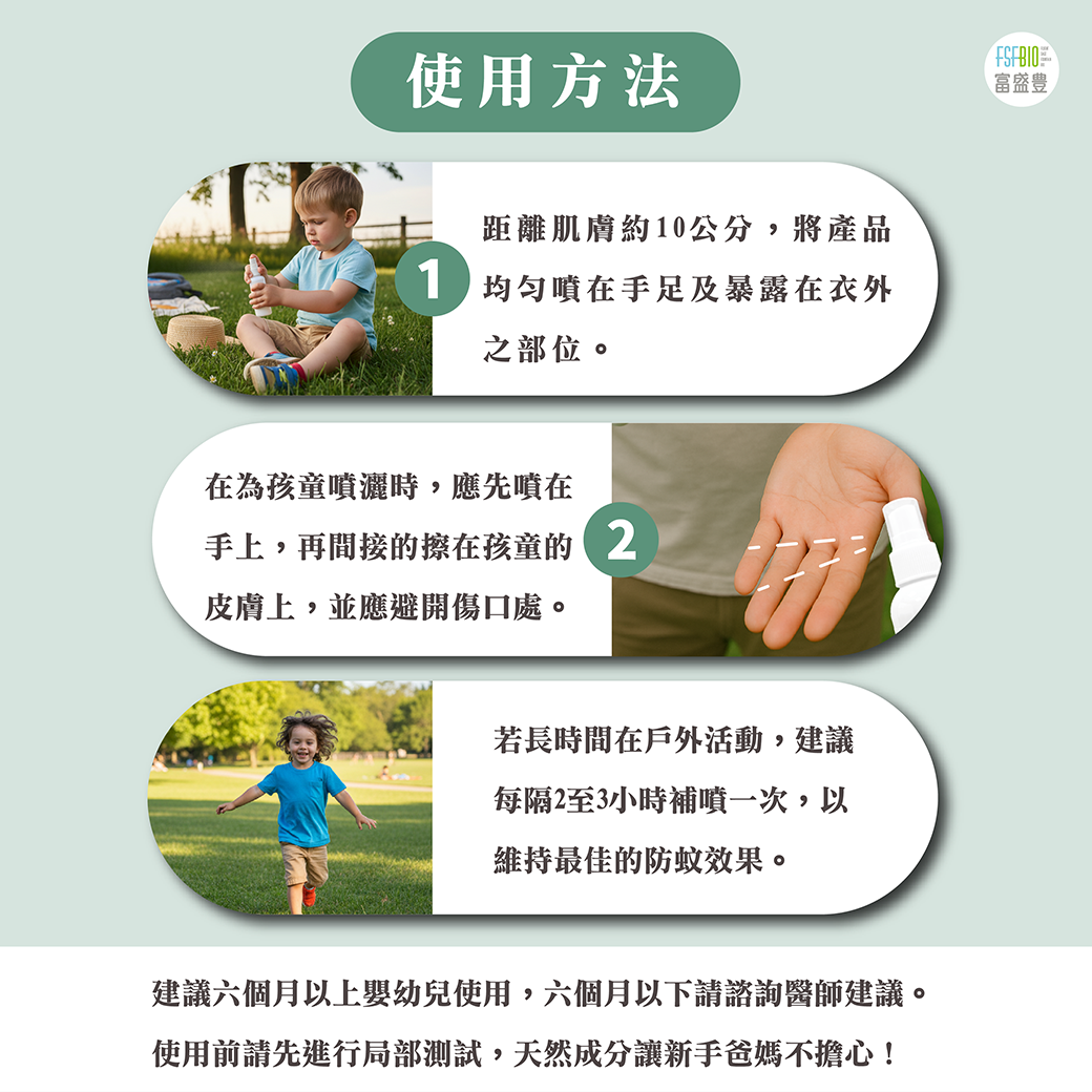 人體專用配方,日常外出安心使用 天然植萃氣味防護,適合全家 戶外活動、通勤、日常防蚊都適合